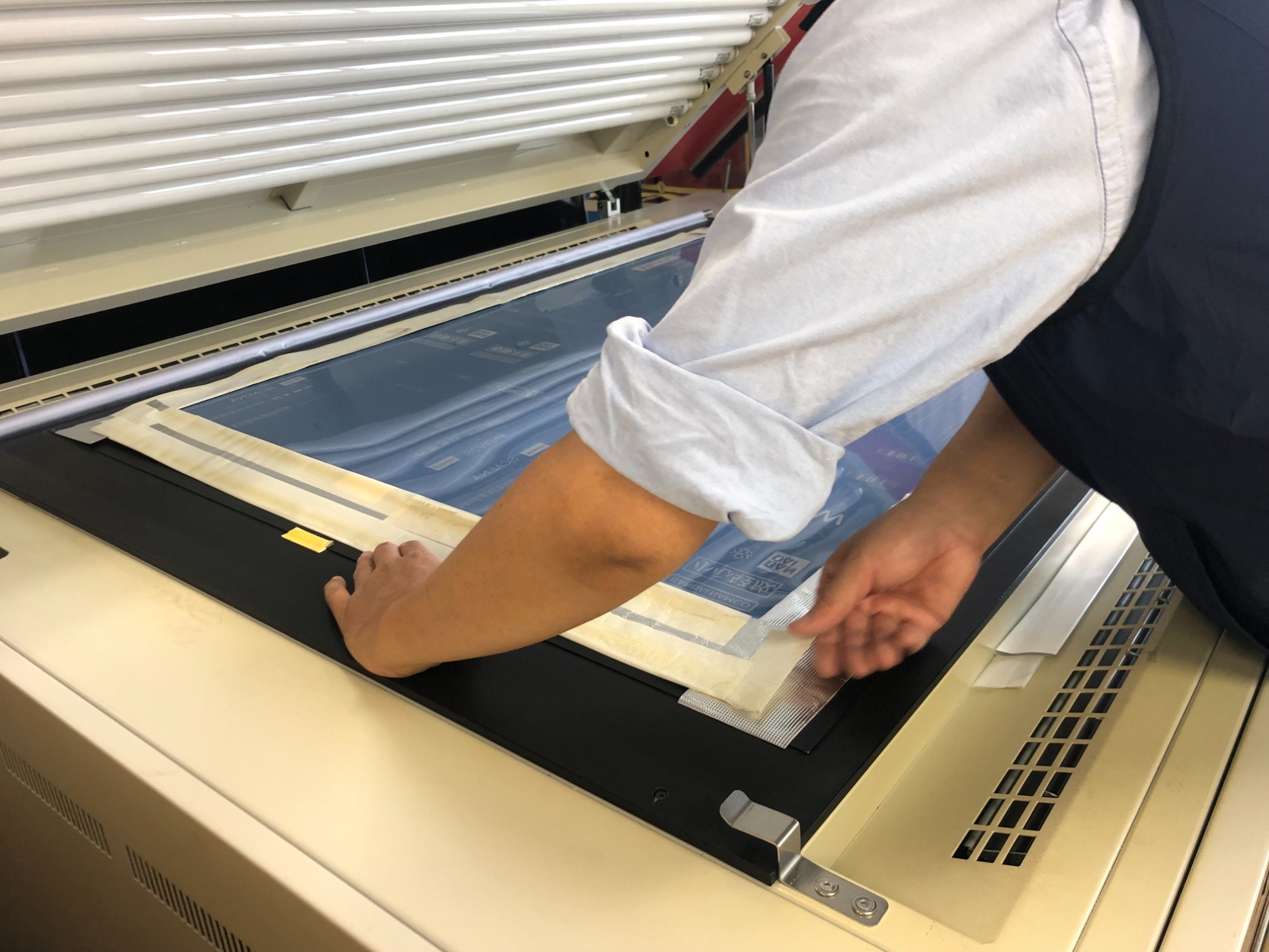 フレキソ版とはフレキソ印刷で使用する樹脂製の柔軟な版のことで、以前は天然ゴム製の素材で職人の手で彫ったりしてましたが、現在は紫外線で硬化する樹脂製の素材で作るのがほとんどです。厚みも数種類あり、当社はその樹脂製の印版を用途や御希望に合わせて製作しております。フレキソ印刷は水性インキを使用することが多く、体への害が少なく環境にも優しい印刷方法で、環境問題の関心の高いヨーロッパでは包装分野において目覚ましく成長してます。日本でも近年印刷技術の向上で複雑な印刷にも対応できるようになってきた事や環境に配慮した印刷方法として注目されてきており、ダンボールや紙袋以外にもフィルム等の軟包装パッケージにも使用されてきております。